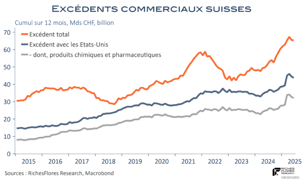 1- La guerre commerciale n’est pas près de prendre fin. Si accords il continue à y avoir, tout un chacun aura compris que ces derniers n’ont qu’une valeur toute relative. Avec les droits de douane, l’administration américaine a trouvé une recette pour tirer les ficelles de négociations en tous genres : financement des investissements, potentiellement de sa dette, pression idéologique, politique, diplomatique, de sorte que les nouvelles menaces foisonnent, revenant sans scrupules sur les pseudos engagements passés. Or, tout indique que ce mode de gouvernance est là pour durer. Les Européens ont plié mais n’ont pas plus de garantie sur ce qui pourrait les attendre à la première occasion. Ils auraient peut-être gagné quelques concessions et un délai supplémentaire en se montrant moins coopérants et auraient, surtout, évité de donner l’image d’une Europe totalement impuissante aux conséquences ravageuses sur la confiance des Européens. Quoi qu’il en soit, si la perspective d’accords commerciaux a constitué le principal espoir d’une issue plus favorable que celle du « Liberation Day », la confiance sur ce front s’est sérieusement érodée ces derniers temps. Le Brésil écope de droits de 50 % pour refuser d’exonérer l’ex-président Bolsonaro de son jugement. L’Inde est soumise au même sort parce qu’elle n’a pas cédé à la menace. La Suisse, enfin, est sanctionnée à hauteur de 39 %, au lieu des 31 % annoncés le 2 avril, pour la bonne et simple raison de ses excédents. Premier marché à l’exportation du pays, la Suisse réalise les deux-tiers de ces derniers auprès des Etats-Unis, pour l’essentiel grace à la vente de produits chimiques et pharmaceutiques que D. Trump a pour cible.