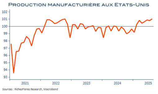 En août, les ventes de détail à prix courants ont progressé de 0,6 %, comme en juillet. Corrigée de l’inflation, leur hausse est un peu moins dynamique, autour de 0,2 %. Toujours est-il que ces données n’ont rien de particulièrement alarmant. Ajoutées à celles des prix des échanges extérieurs, elles ont même poussé la Fed d’Atlanta à réviser à la hausse sa projection de croissance pour le troisième trimestre, de 3,1 % à 3,4 % en rythme annualisé. La production manufacturière a, quant à elle, augmenté de 0,2 % pour rejoindre son plus haut niveau depuis l’automne 2022, un résultat que D. Trump devrait savourer. Alors, fausse alerte en provenance du marché de l’emploi et retenue de la Fed demain ? Cette dernière option ne convainc pas.
